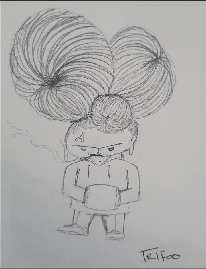 Our tale began watching TRIFOO collect rocks that seemed to satisfy some unknown set of conditions. We watch as he skips so many of these rocks across a massive lake that he fells a tree on the other shore. A superhuman feat of power, precision, and diligence. He returns home to his small cottage, and while making dinner a young woman shows up on his doorstep. She is badly injured and asks for help. He begrudgingly lets her in and immediately begins packing his things; it seems he is on the run.